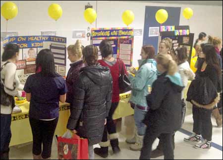 On Friday, December 14th, Dr. Tom Harle, Dental Clinic Coordinator Anthea Chang and students in the Dental Hygiene Program brought “Keep Smiling Day” to Youville Centre. Our young mothers were able to peruse the colourful, educational display that the students put together and they gathered practical knowledge about dental care and received free samples of dental products to promote their oral health routines at home.