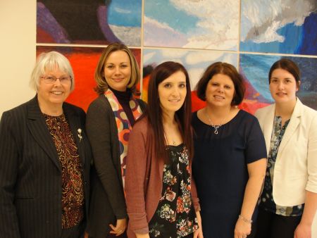 L to R: Councillor Marianne Wilkinson, Youville Centre Board President and Mentorship Program Task Force Chair Megan Wallace, Alumna Darian Parsons, and Law Clerks Susan Lepine and Valerie Lepage.