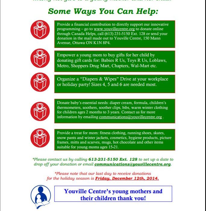 Thank you to EVERYONE who helped us at Youville Centre provide a magical Christmas for our young moms and their children. We wish all of you a healthy, safe and happy holiday season!