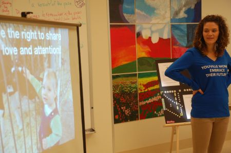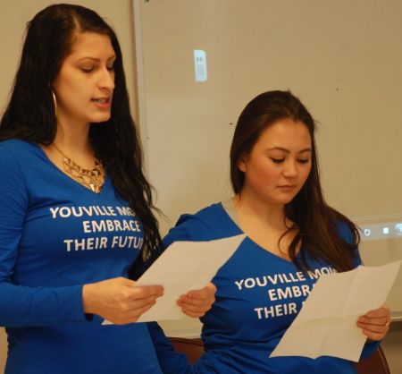 The first of its kind in Youville history, this event allowed students to display their artwork, scrapbooks, mixed media pieces and digital films produced from the Me, My Baby, Our World (MMBOW) parenting course and the EMBRACE Your Future course (EMBRACE = Empower, Motivate, Build Resiliency, Role Model, Advocate, Communicate, Educate). Both courses are linked to credits, helping our students get closer to graduation as they learn important life skills. Executive Director Cindy Simpson launched the event by thanking our volunteers, donors and community partners, and then proudly introducing our hardworking students.