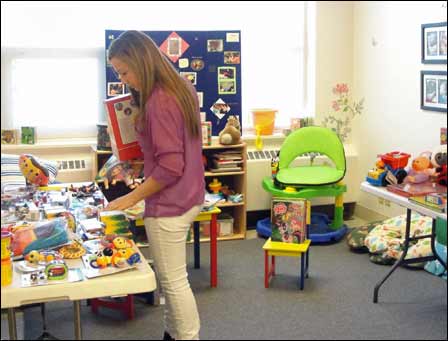 Scrapbooks are an essential component of the United Way-funded Me, My Baby, Our World parenting course. During circle time, photos of moms and babies are taken by our staff and printed out immediately. In the second half of the class, students work on their scrapbooks using the photos taken during circle time. These photos show the bonding and attachment that is occurring between mom and baby, and they provide a visual history of the progress the young moms and children are making in the course. Inside the scrapbooks, moms write birth stories, descriptions of their child’s personality, and letters to their child to accompany the photos and artwork.