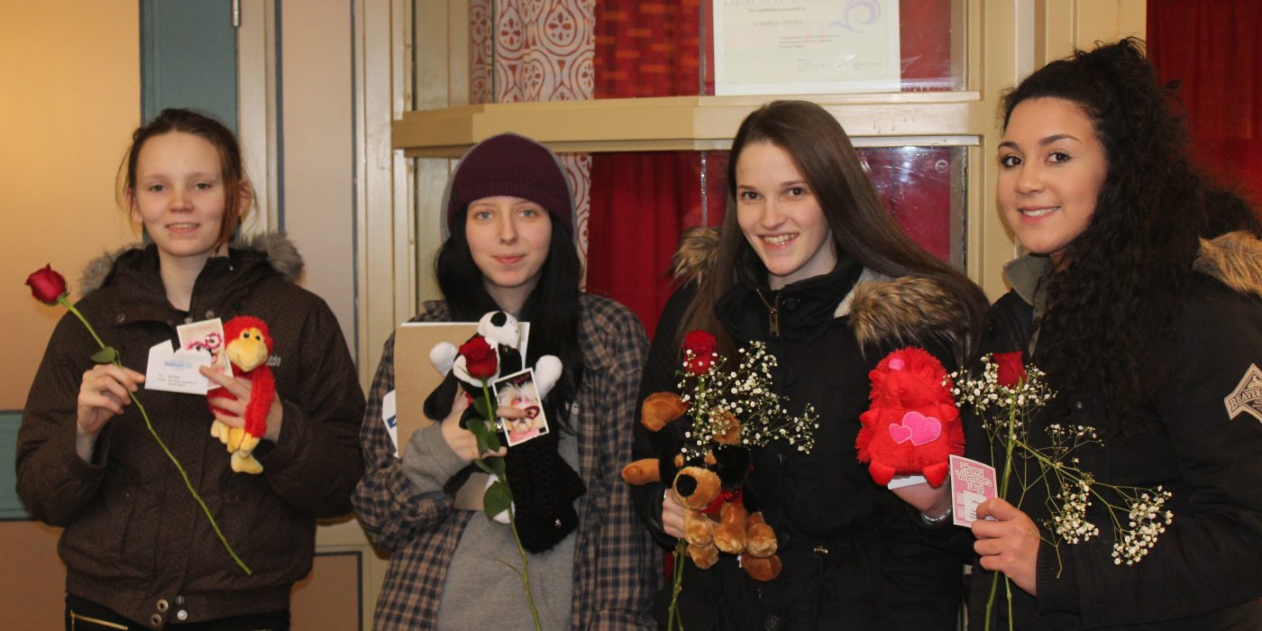 At Youville Centre, we celebrate Valentine’s Day by celebrating the love between our young mothers and their babies. We decorate the centre, Youville’s babies and toddlers make special artwork for their mothers, and we have a very generous donor who provides a rose for each mom. The roses are given out at the end of the day, and our students’ faces light up with beautiful smiles the moment they realize they can choose a rose, and that this rose has been specifically donated just for them. Many thanks to Debbie C. and her family for continuing to give to our young moms in memory of their late mother, Rita, who was a longtime donor and supporter of Youville Centre.