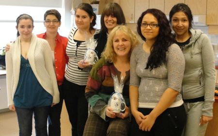 Pictured here with our students are: (second from left) Marina Stipanac, Mentorship Program Volunteer, and (centre, L to R) Penny Carkner and Darlene Villeneuve, Youville Centre alumnae.