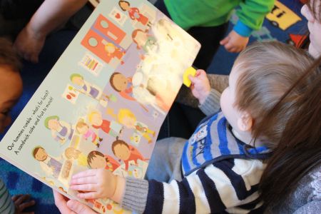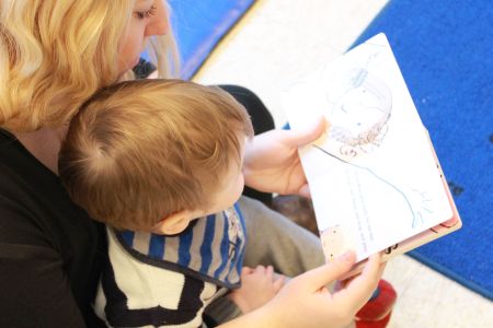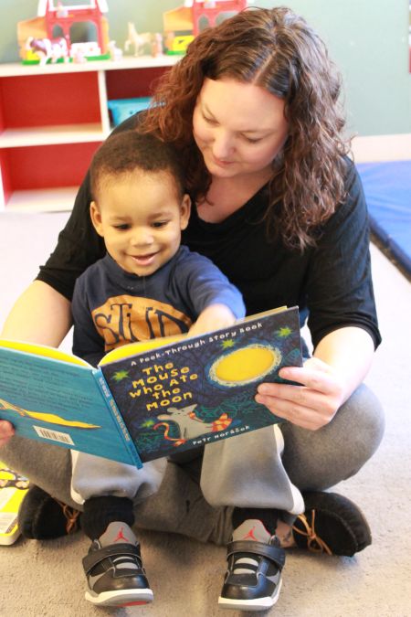 Later that morning, our Early Childhood Educators held a special “circle time”, during which they chose from a selection of books (that was generously donated by a family member of one of our young moms) to read to Youville’s babies and toddlers.